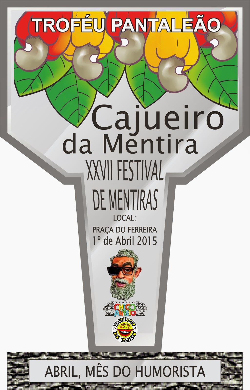 Debaixo do Cajueiro Botador (Cajueiro da Mentira), na Praça do Ferreira, rememorando a história dos potoqueiros das antigas, acontecerá a abertura das comemorações do Mês do Humorista. Ali, no dia 1º de Abril, as 17h, será realizado o XXVII Festival de Mentiras, onde escolheremos o Mentiroso do Ano, que levará além do Troféu Pantaleão (Personagem mentiroso de Chico Anysio), premiação em dinheiro. A premiação é líquida e sem desconto, e, mesmo, apesar da crise econômica, que assola o Brasil, será mantida. R$ 1,75 no total, assim distribuído: