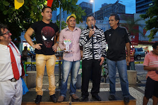 O prêmio foi pago na hora, em moeda corrente do Brasil, sob forte esquema de segurança. O humorista Cibalena ganha o Festival de Mentiras pela 2ª vez: 2014 e 2016. Se você reparar bem, juntando os dois prêmios, já somam DOIS REAIS.